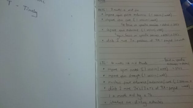 As I am setting my own goal setting program, I will set SMART goals as well as setting short, medium and long term goals. I came to these goals by asking other climbers who climb with me what my weaknesses were. The feedback I got was unanimous.